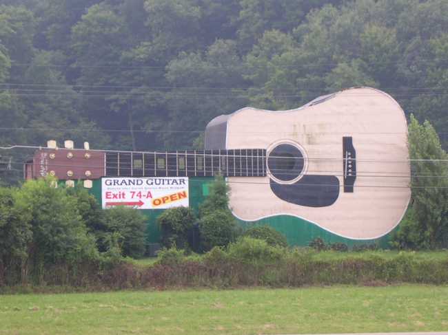 This guitar-shaped building is alongside I-81 in Bristol, Tennessee just over the border from Bristol, VA