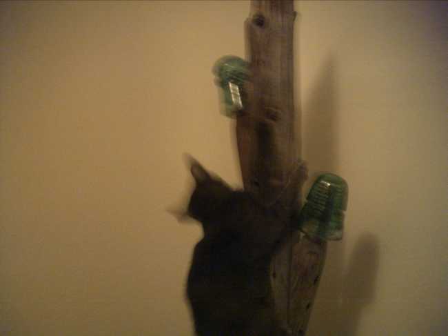 My cat, Mouse Mouse, Likes to climb the old pole top i have in my room. Its main use is a coat-rack. She likes to climb all the way to the top and jump off onto my dresser.