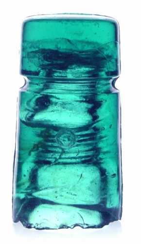 For showing off all the messiness best, this insulator probably shows best from the rear. You can really see how big that bubble is in the middle, and the cloud of carbon and steam in the dome is unobstructed by the embossing.