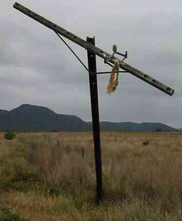 A steel pole on the Bylong Valley Way telephone line, near Sandy Hollow, NSW. Insulators were CCG 430s and R.F (61) 1154s. I was only interested in the 430s at the time. Another collector was nice enough to leave me two 1154s on my return trip! [IFONA Group] |