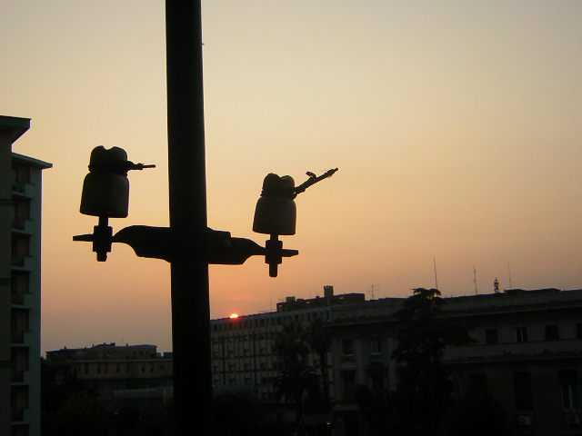 This is what I see staying at the window of my room: the two insulators are mine, of course!