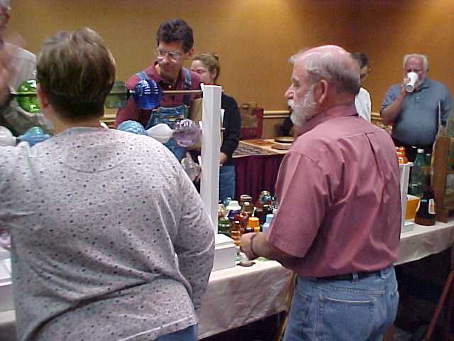 This is Rod Krupka from our club at his tables. Rod is a long time collector and had some nice insulators as well as lightning rod balls (among other goodies) in his stock. Rod said that he did real well on the insulator sales. We will definately need to find a larger room for next year to accomodate more dealers. It was a great time and I would like to thank all involved for making it such a success! |
