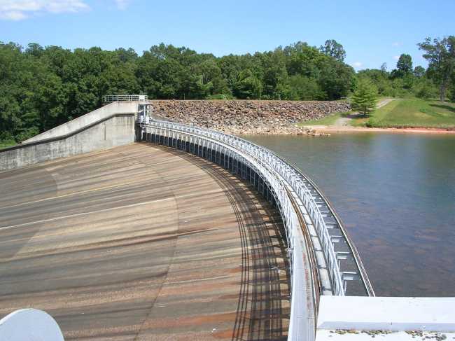 The top of the dam and thespillway at Chatuge Dam. These lakes and dams serve as a reservoir for storing water that feeds the TVA hydroelectric system in western NC, northern GA and eastern TN. These lakes are also great for fishing, boating, swimming, etc, and are nice and close to the new home. |