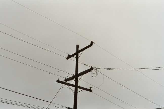 This pole is on a different street than the previous photos. Notice the top crossarm is tilted forward and the pole is ancient enough to have actual colored glass signal insulators on the secondary crossarm. The colors look like they may be McLaughlin's. Looks like someone helped themselves to a couple of them when they put up that twist house drop! |