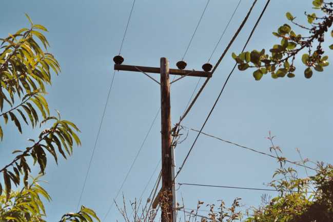 This pole has chocolate brown O-B M-2751 multiparts on it and sits right behind our friends house in Grover Beach California. They are considered as "boat anchors" in the multipart insulator collecting world, but it is nice to see them in service instead of sky blue line posts or polymer insulators, as you will see in the next photo. |