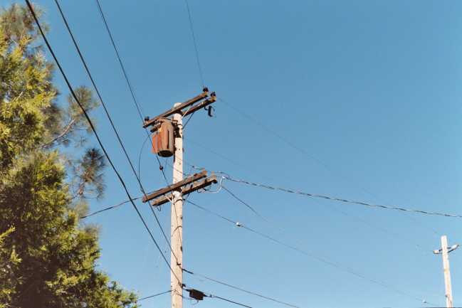 This old pole is right by our friends house in Jackson, California, situated in the Sierra foothills. The primary voltage is 12,000 in a delta configuration. Notice the small size insulators compared to what we have seen over on the coast. This transformer is really ancient and has some unusual cooling fins on it that I have never seen before. |