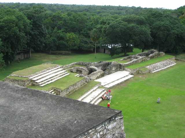 This shows the height of these ruins. Roy told us this platform was used for human sacrafices of young virgins to the Gods. This one was about 75-80 feet high. We had to climb about 80 stone steps to get to the top and then another 80 or so on the back side to get down. Great view from up there though. |