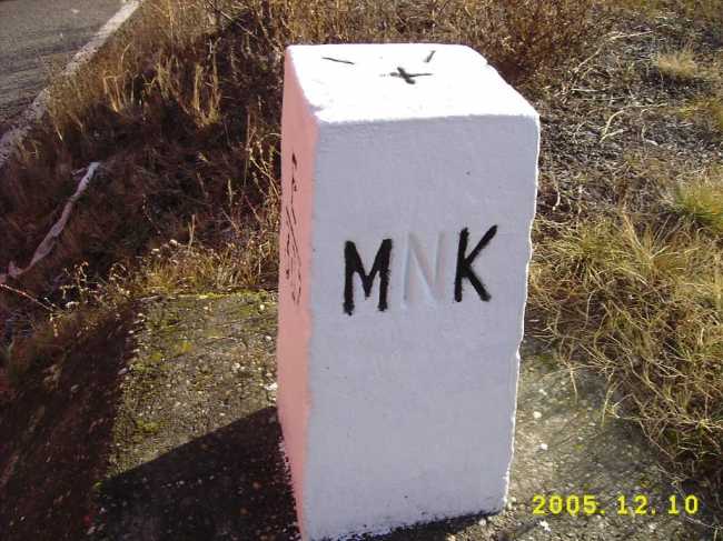 Here is the stone's Hungarian side. On top it is the border sign lines, there is a curve, the line run out to other way. The marking is very funny, the "N" letter were painted off The "MK" means: Hungary (M) Republic of (K) The "MNK" was: Hungary (M) People's (N) Republic of (K) They painted off the "N" letter with big happy, and they didn't changed the stone... :-)) |