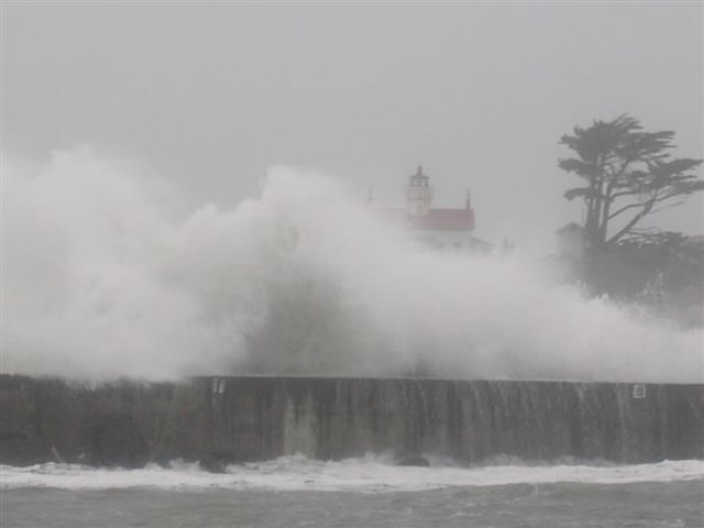 A little closer picture of wave coming over jetty in Crescent City! Been working in this weather for 12hrs a day for the last two weeks!