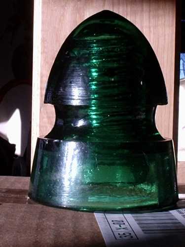 Here's another shot of today's best find. I forgot to mention with the other photo that this piece is an unembossed Pennycuick style. The other pic shows the tilted dome. Can't get the right light through to show the milk swirl, booger, and amber chunks. This piece really has a lot going for it. There's a little damage, but I'll take one of these any day for the price paid. Got a great deal. |