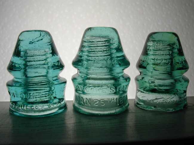 These are great examples of early threaded glass telegraph insulators. What a classic and sexy style!