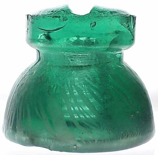 Here's a one of a kind dark aqua glass insulator from Russia. Not listed in any of the books and only seen one other specimen condition insulator like it. Likely an obsolete design and therefore of very limited production because this piece is completely engulfed with electrical flashovers around the entire outer skirt. Also has a cool rock in the skirt! |