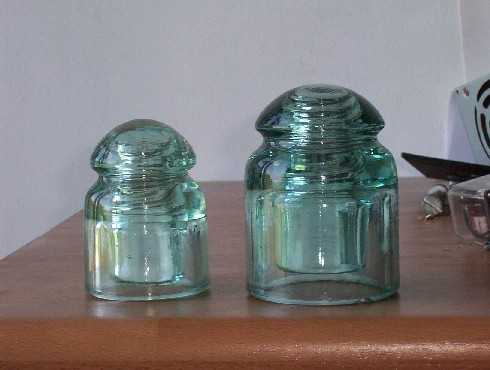 Typical telephone insulaotrs in typical colour.