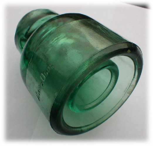 Other than the embossing, this looks pretty much like the standard small Russian telephone / telegraph insulator. Not sure of manufacturer, end user or its time frame.