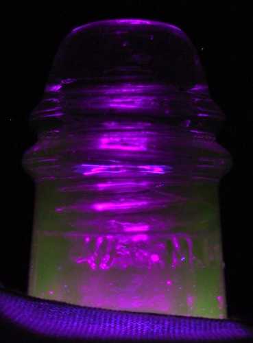 This royal purple W.G.M.CO. 121 glows very strongly when placed under a black light. My camera can't capture all the glow since the visible light from the black light interferes. Nevertheless it gives an idea of how it appears.
