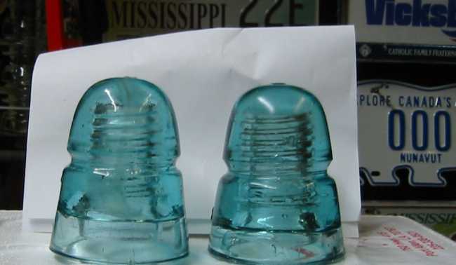 Got these two in a cheap group of 4 One has a nice stream of milk with amber in center running up to dome, plus a couple smaller milk stringers. It's hard to photograph, but the right one has a belly button on the side of the dome. It's a hole (open bubble??) with a nub in the middle. It reminds me of one of those TORX security screws that has the theft resistant raised pin in the center. |