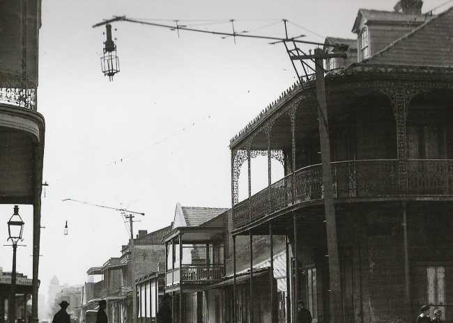 check out this light setup. At the very end where the light hangs from, there is a double end mount with insulators on each end. it's hard to see in photo. They are very light colored. I took a wild guess they look like 162s maybe HG CO petticoats before turning purple. I wonder how these lights held up during hurricanes |