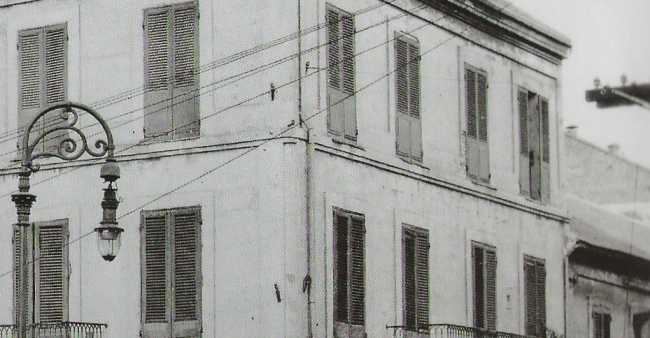 Its hard to see, but there are insulators mounted on wooden sidepins on building If you focus on center of picture you can see four