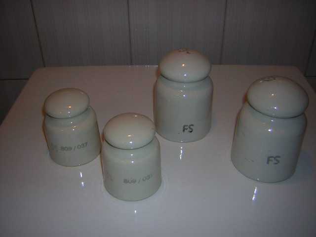 Today I got these four insulators: two type FT 120 by Richard Ginori with the Italian State Railroads (FS) marking, dating 1980, and two smaller FT 92 mfd by IMEC dating 1982 with the FS series number (809/037) near the factory marking.