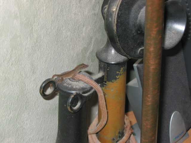 I was up early Friday returning emails and noticed something move. This little guy was sitting up on the phone! "You're on your own". I have tried to catch these guys and set them out doors many times. Not an easy task! He's sitting on top of the ear piece. He's about 4 inches long and fairly young I would say. We had a family of them living in our Lanai for a few years. a Dad, Mom and three little young-uns. |