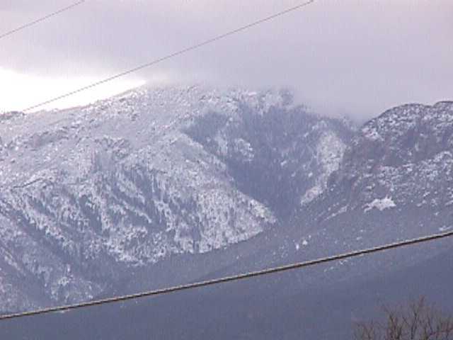The clouds cleared enough to get a shot of Miller Peak and the snow that fell overnight on the Huachuca Mtns here in southeastern Arizona. Sierra Vista is Spanish for Mountain View.