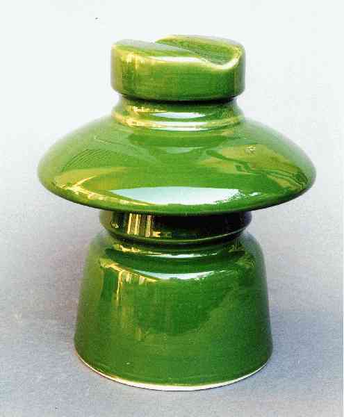 This unusual insulator has been rescued from the "international" meter gauge electric railroad Rimini to San Marino. The railroad was opened in 1932 and damaged by WW 2 fighting to the point that it never reopened. Track and poles are still partly in place, but nearly all insulators are broken, this is the only one I could find in good shape. It was used for the phone line and was made by Verbano. [IFONA U ???] |