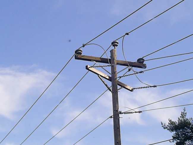 Here's the pole in line before the switch pole. this one is in service and feed machinery for the coal yard.