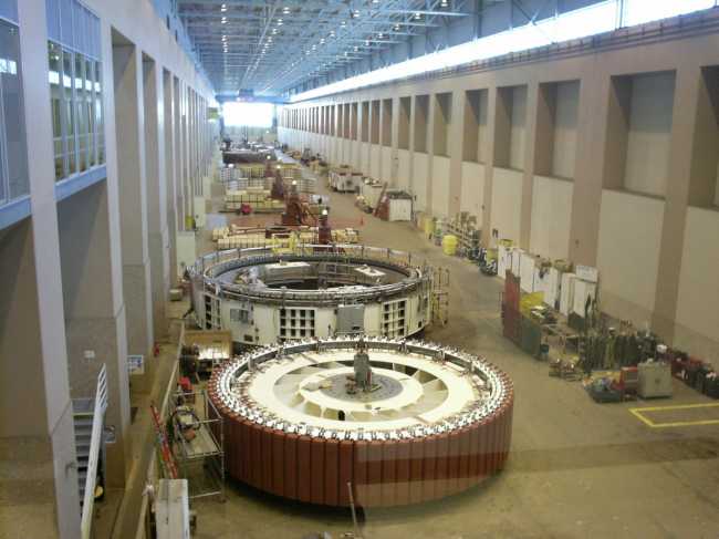 Here's the powerhouse of the Rocky Reach dam outside Wenatchee Washington. The generator in the forground was being serviced and you can see the huge rotor with the windings and the magnet sigging behind it.
