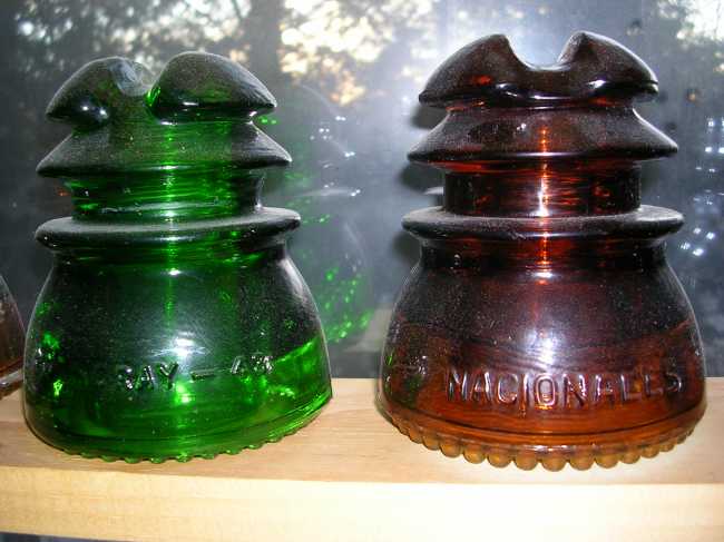 Hemingray-43 in 7-UP green, Telegrafos Nacionales in orange amber. Only a tiny bit uf dust...