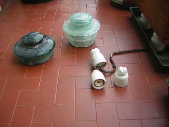 Back home from my last hunt: One MIVA A 320 aqua glass, one BORGO 3325 with lower shell missing, two 365/920 marked VERBANO, and, totally unknown before, a type 3 marked LIGURE VACCARI (with the hook). I'm very very satisfied! Update: the pin of the Ligure Vaccari insulator has been removed, and all they are clean and well dispalying ;-) |