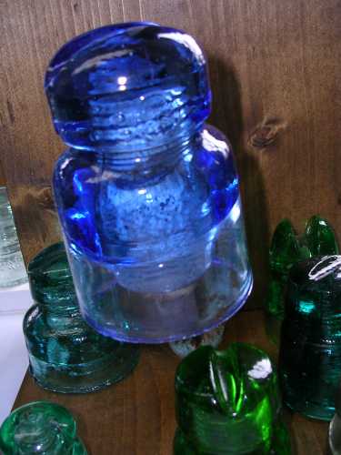 Another one of Andy's excellent Russian (or Belorussian in this case) insulators. Still cemented onto the pin, nice deep cornflower, almost a light cobalt blue. Crown embossed HC3 (NSZ). Neman Steklo Zavod Neman Glass Plant. Historical Note: Some of the J. Stolle Niemen insulators from Poland are of the same CD, and have a very similar embossing style, but with the letters "JSN" in place of "HC3". Niemen became Neman (HEMAH) after WWII, either as a result of Soviet expansion, or by actually being relocated. I'll have to check the historical archives on this one... In Cyrillic this would be СТЕКЛОЗАВОД HEMAH (if your computer "decodes" Cyrillic) |