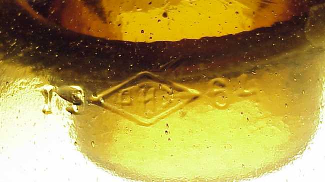 Close-up of the embossing found on some CD 247.5 glass insulators from Russia. This one being found in a beautiful Yellow Amber!
