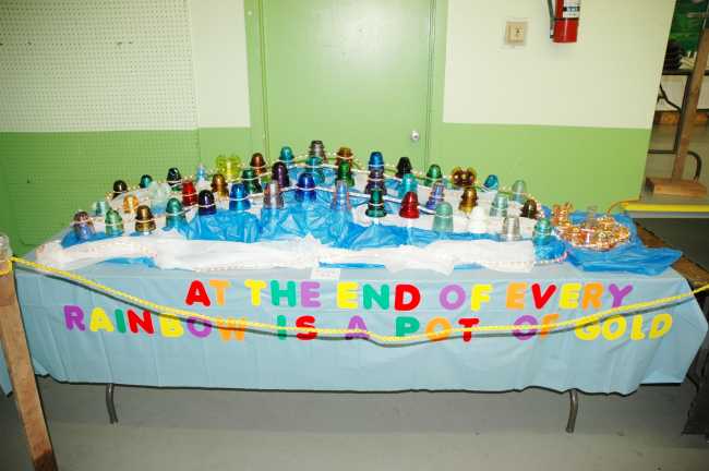 This is Marge's display "At the end of every rainbow is a pot of gold." Note the carnival insulators at the end!