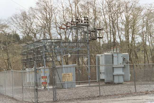 This is the Grayland substation, located on the central coast of Washington state. It is owned by Grays Harbor Public Utility District.