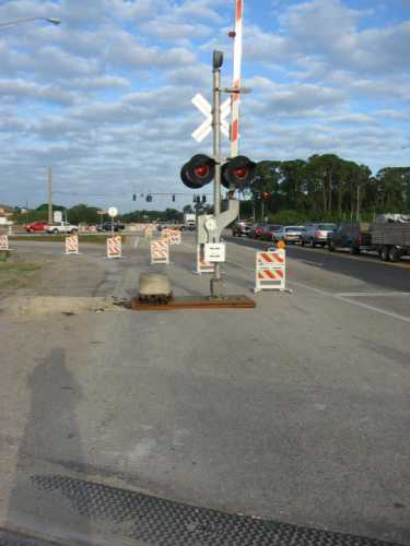 Ever wonder what they do when they have to move a signal to widen the road? Well, this is what they do. They provide a large piece of steel and some weight for balance and there they are. a portable signal!
