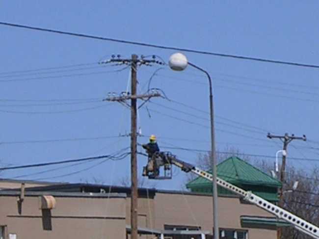 This guy is working on the other parking lot (where I work) Taken with full 12X telephoto mode, it's a tad fuzzy...