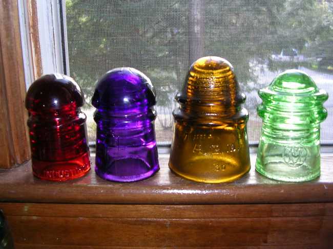 A VTS Industrial commemorative in Ruby Red, A Canadian Diamond in Royal Purple, An AGM in golden Amber and a VM (Vidrias Monterrey) in true Depression Green.