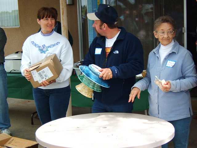 Kathy Greaves presents this beautiful ceramic piece made by her and signed by most of the NOR-CAL members to the Rhodes for putting on this great tailgater and barbeque for the last 10 years