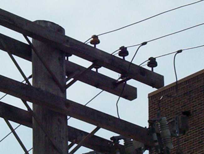 Sorry for the really bad quality picture. The first insulator closest to the pole is one of the bright yellow Canadian Porcelains that were quite prominent in the WPEC system