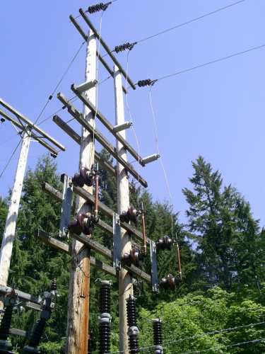 small sub that feeds some radio towers. pri voltage is 55kv secondary is 7200. there are only 2 phases on the outgoing side. Here's the incoming 55kv lines