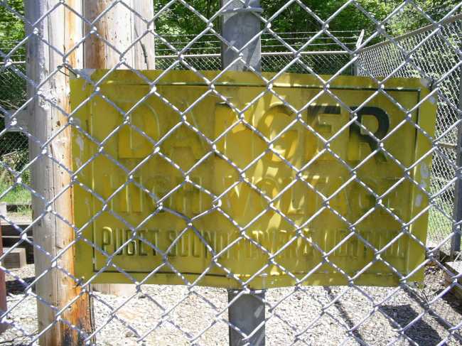 Old sign. Puget Sound Power and Light was the first power company in this area, started around 1900. Now called Puget Sound Energy.