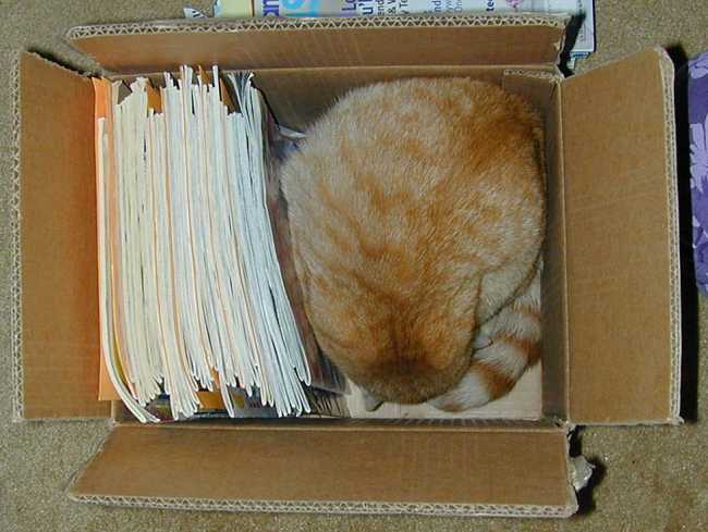 Our cat Amber, who loves to get into everything. Boxes and paper bags are his favorites! If the box fits, sleep in it... !!!