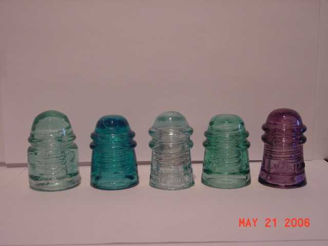 Next in the line-up is an ice aqua CD 124.3, a Brookes Blue CD 120 Pat. App. For, an Ice aqua WFG CO CD 106, a Greenish CD 120 1871 and roundin out the rodeo a medium SCA CD 106 WGM CO. Yeeha!