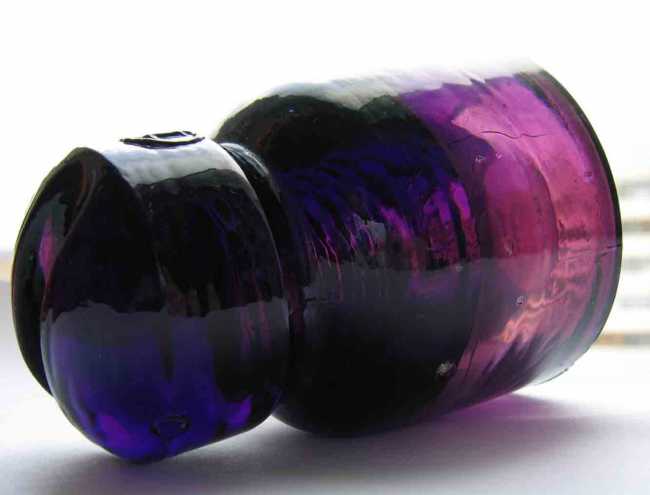 This one appeared on e-bay, and it has to be the wildest color insulator I've ever seen, two tone cobalt and violet Neman (HEMAH) C3H (SZN)