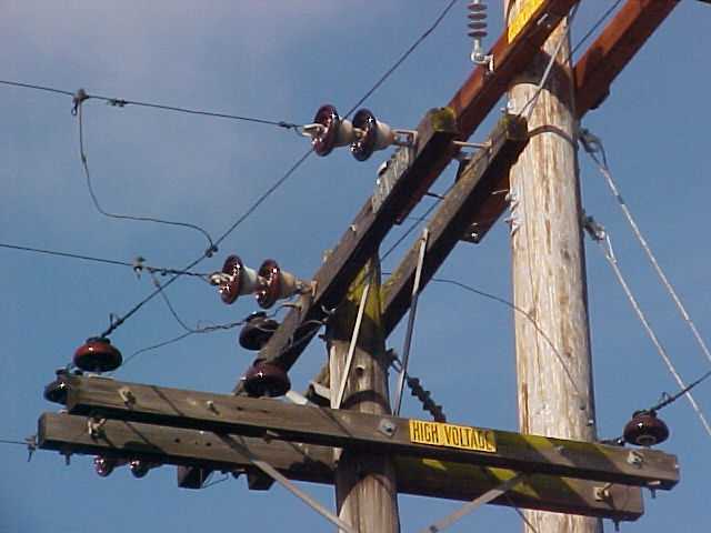 A better view of the good stuff. Interesting old thimble type dead ends with # 4 hard drawn solid copper line wire. Not a lot of this left in town.
