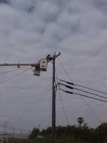 The new conductor being placed in rollers prior to the tensioning part of the job.