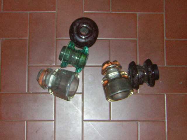 Today I got these insulators: a couple AVB 75 in brown porcelain marked FIP, a MIVA AVB 75 in aqua glass, and two FIDENZA 6118, 1st and 3rd series, from a dump near Parma town