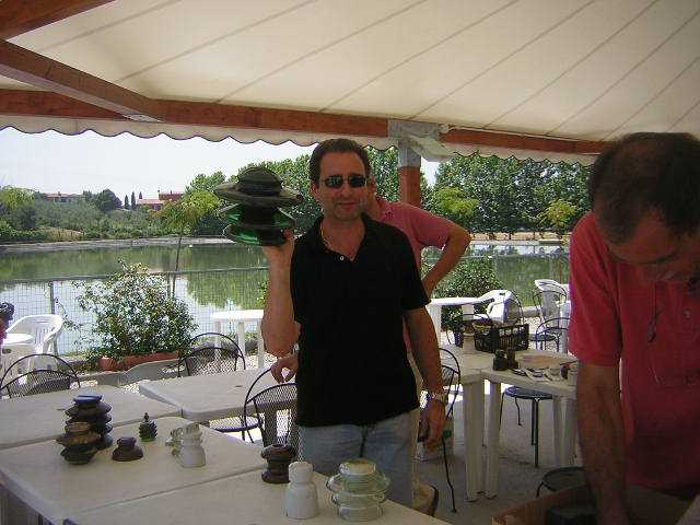 Aldo shows (he's very very proud of it) his new MV insulator by MIVA (on the right side Guido).