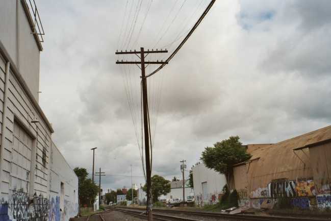 This is how they dead ended the west end of the line. Except for one wire, as you will see in some later photos. I would hate to be hanging here at night!