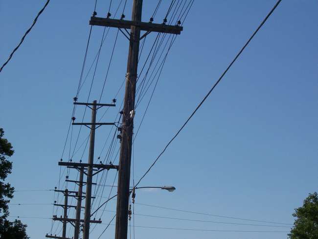 Continuing on North about one block I came across this weird jumbo as the lines move to one side to allow for another 24 KV feeder to join on. This one also connects from the east side (running beside but one block north of the last tap) but continues north as it's own feeder instead of just tapping off like the other one did. Next Picture: [id=160594481] |